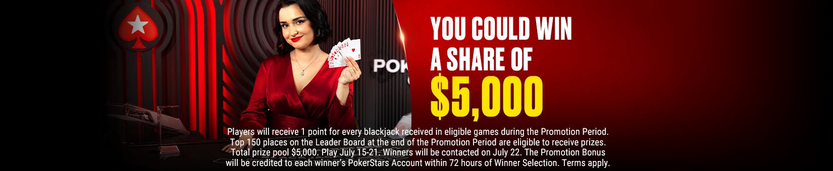 You could win a share of $5,000 in our PokerStars Live Casino Blackjack Leader Boards