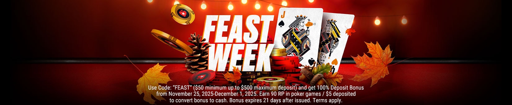 It’s Feast Week at PokerStars, and we’re serving up a special offer to fuel your game. Get a 100% deposit match bonus up to $500!